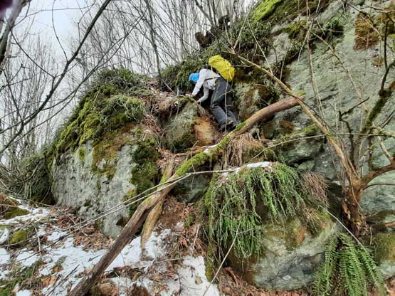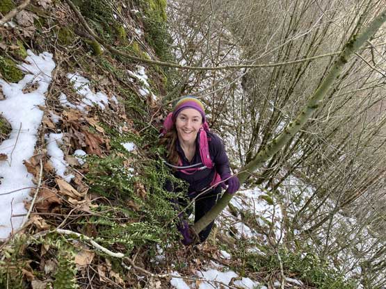 Maria coming up this same bluff step. Felt 4th class for at least one move