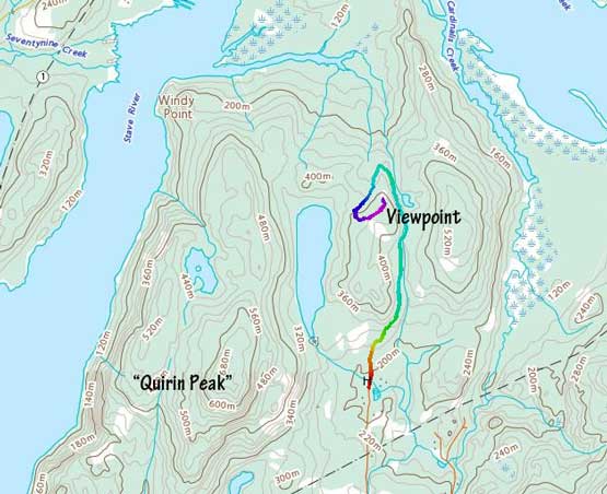 The hike was essentially on a logging road and the road was in a great shape for driving. There is a gate at the bottom as otherwise I could have easily driven all the way up to the viewpoint. The beginning 2 km had some notable elevation gain. The middle stretch was rather flat with minor down-hill. The viewpoint itself was as good as I was hoping for and we did manage to take some good photos.