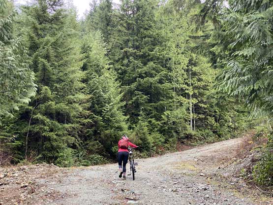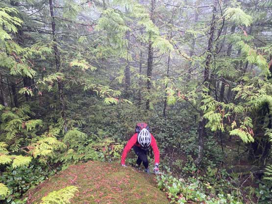 The bike ride was literally a no brainer. Between the two of us I had the better bike thank to Matt’s North Shore Bike Shop so I was able to pedal more. For some steep sections we both had to push the bikes but I was able to ride at least half of the uphill distance. The start of the ride was steep but it levelled out for a while before reaching the Hunter Trail junction. We took the right fork and had another short stretch of flat-ish ride. The spur road onto the north ridge of “Mt. Cannell” soon turned steep and rocky and stayed like that until the end.