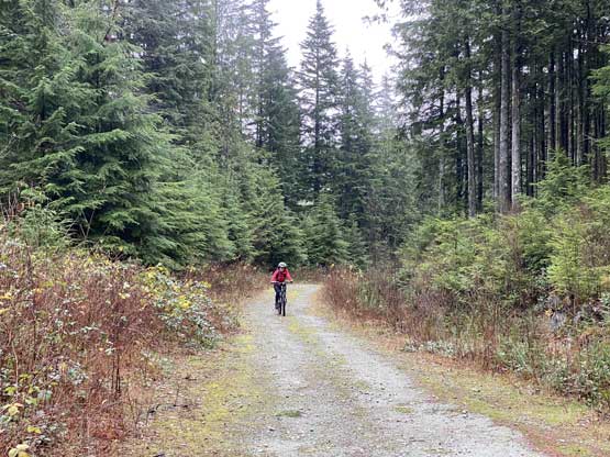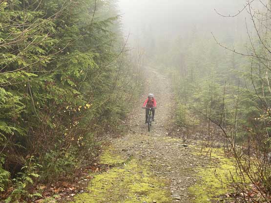 The forecast for this Friday was not brilliant but at least there’s no precipitation. The forecast showed the possible of sunshine but that turned out to be the case only for the high alpine. This “peak” was not tall enough to break through the clouds, unfortunately. I was able to convince Lily to join me on this biking trip and we left Surrey at 7 am. I was able to fit both of our bikes onto my truck’s bed. In an hour we arrived in Mission encountering no traffic delay.