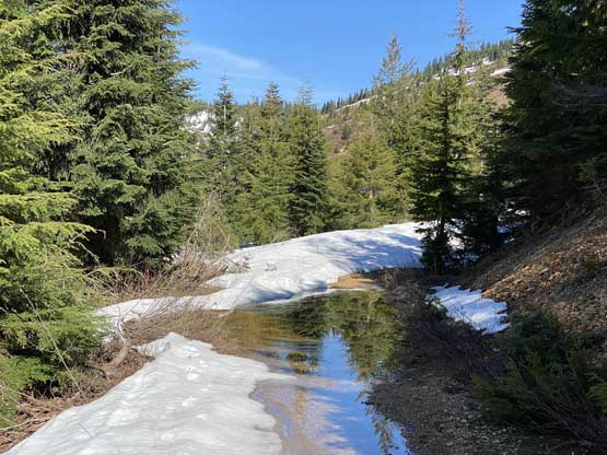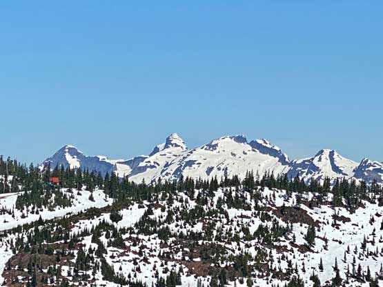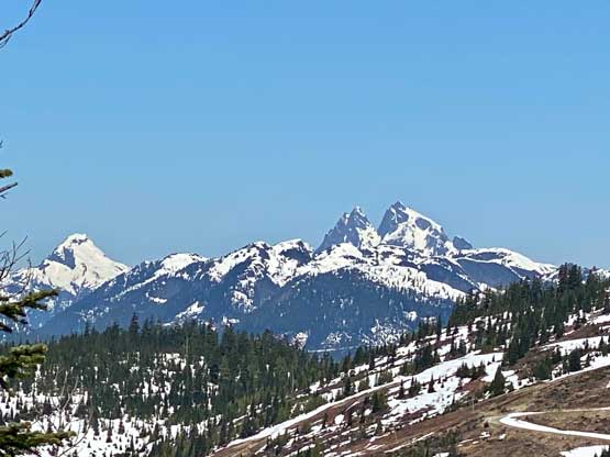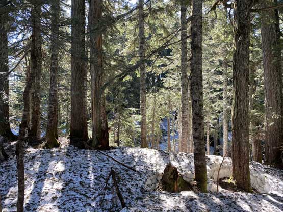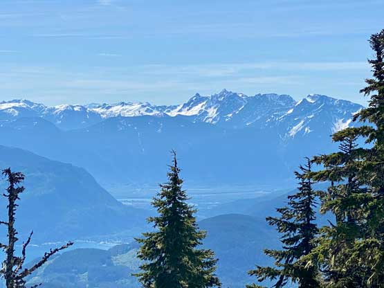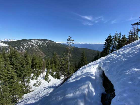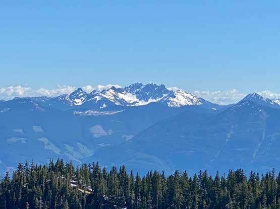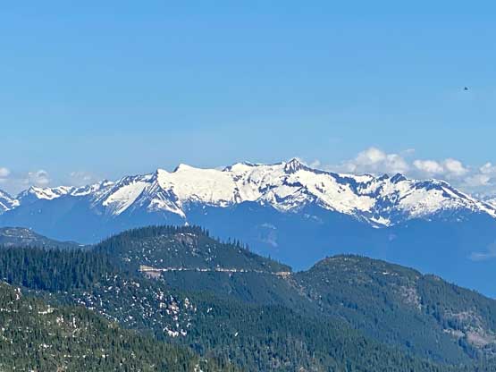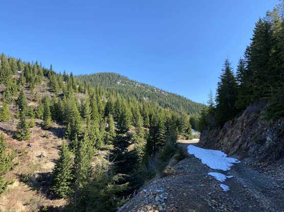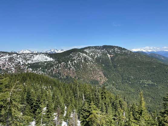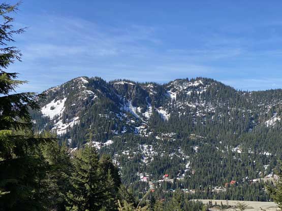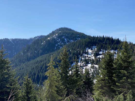 Mt. Klaudt is the least interesting among the few bumps in the immediate vicinity of Hemlock Valley as it appears broad and wooded. There are some logging roads running on the lower NW flanks from the ski resort but there’s no trail going anywhere further towards the summit. The old logging roads are also seriously bushy and overgrown, that one needs a healthy snowpack to tackle this hike. The only route that “makes sense” is the NW ridge and further research showed that I should combine Mt. Klaudt with the nearby unofficially named “Cartmell Peak” into one trip. Earlier in this day I had ascended “Cartmell Peak” and got some fabulous views.