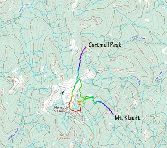Cartmell Peak and Mt. Klaudt ascents from Hemlock Valley. GPX DL