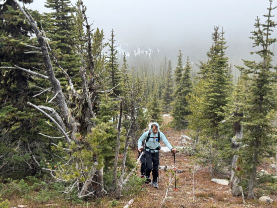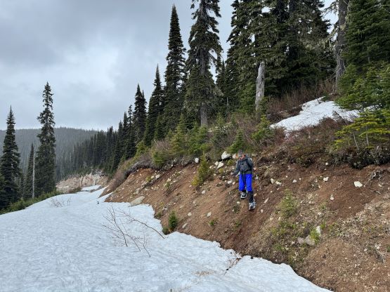 Mt. Lytton is aptly named as it’s the highest point of a large but prominent plateau in close proximity to the town of Lytton. This peak offers no mountaineering interest, but is a good objective for exploring and rambling around. The only logical route is the undulating south ridge over at least two major bumps from Lytton/Jackass saddle, which is accessed by 1-2 hours of driving on rough logging roads. The road system had been destroyed by the apocalyptic flooding in 2021 and nobody knew when it’d be repaired. Matt J. had made multiple attempts and basically had been trying to convince me to go in the past three years but I had no desire to drive a few hours for nothing. I was basically just waiting for Matt to finally make a successful ascent to report back the road’s being “good to go”, and I planned to pull the trigger immediately after. This eventually happened in the spring of 2024. There was another group that took advantage of Matt’s recent trip beta and I formed the third group on the weekend afterwards. There was supposed to have a series of atmospheric rivers coming in, but there was still a narrow window on Sunday morning. I made the plan with Erica but eventually Elise and Francois also decided to come along for the ride. I made all of them to agree with me on the car-camping itinerary as otherwise I would not be able to get any sleep.