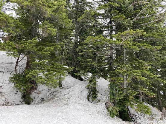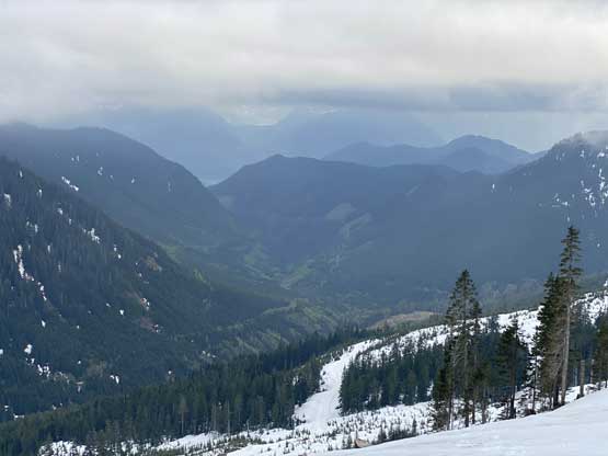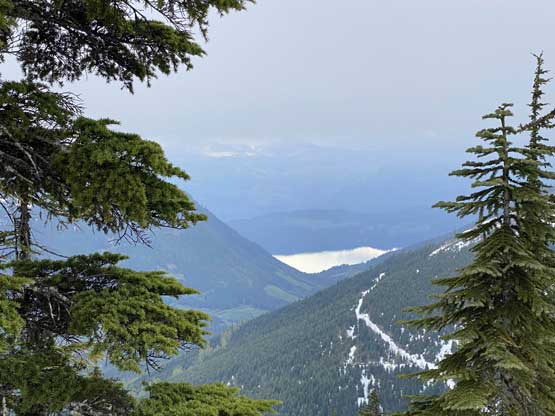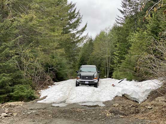I plunged down the soft snow following the descent tracks. The down-tracks did some long traversing but still better than the up-tracks in my opinion. While descending the steep cut-block I got to enjoy a few long glissades and also at this point, I had descended below the clouds ceiling. I did take some photos on the hike-out, but the views were rather so-so. The truck was still there unfortunately and the guy was still sleeping so I assumed that the two guys were still walking out for help. I did not see them on the drive-out but I did see a few parties camping on this FSR so I assumed that nobody offered them a tow. Part of me felt bad for not offering them a help but I’m not someone pushing into unfamiliar fields without the assurance of certainty. My round trip time was 4.5 hours and I got back home at lunch time.