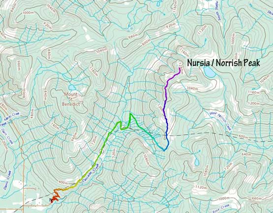 Nursia Peak / Norrish Peak ascent route. GPX DL