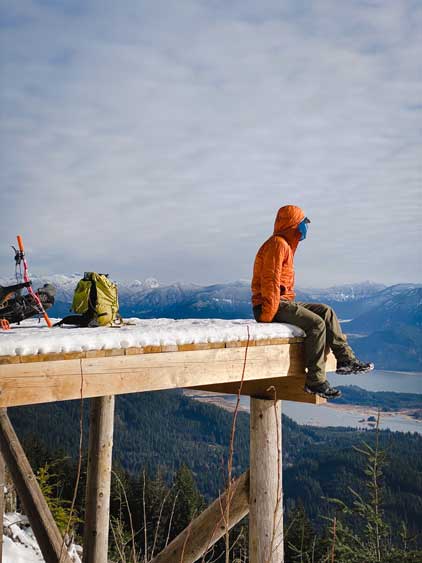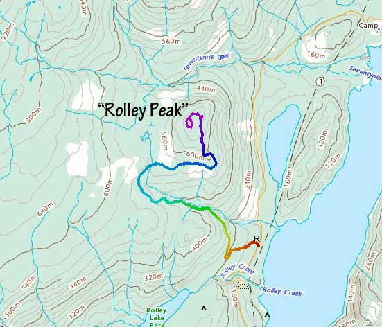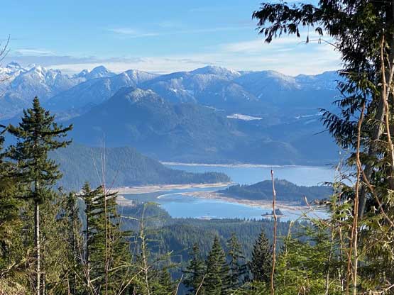 “Rolley Peak” is the unofficial name of the high point immediately to the north of Rolley Lake Provincial Park with just under 200 m prominence on the lower slopes of Mt. Crickmer. This “peak” was mostly unknown to the public until the winter of 2021/22 season when several trip reports blew out the spot. The viewpoint just under the summit offers 180-degree panorama of Stave Lake and the vicinity while the ascent is an easy plod up a gated logging road. The access does require some driving on gravel roads but is doable in any passenger car. In many aspects this hike is similar to another Mission’s social media hotspot Hunter Trail, but doubles the elevation and distance. For those looking for a more demanding hike than Hunter Trail but with equally rewarding views then an ascent to Rolley Peak’s lookout should be an ideal choice. The true summit is however, bushy and forested and is only for the peak-baggers. Thankfully the detour to check out the true summit is a short one.