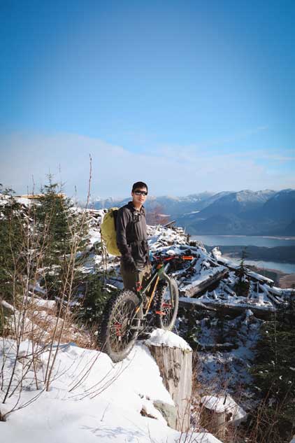 The ride back to where Wendy ditched her bike was fast and furious. I took the oppourtunity to practice biking as slow as I could humanly do, and learnt that on some very steep and loose hills I just could not bike too slow. The horizontal ride back across that 500-550 m stretch was fun for both of us. Lower down Wendy had to be extremely careful but did manage to ride most of the way, except for some really steep and loose stretches where she just walked the bike. I thought about to swap bike with her but decided against that idea, as I still wanted to enjoy the ride. I certainly would not have enjoyed this trip if I had her bike instead of my trust fat bike from North Shore Bike Shop…