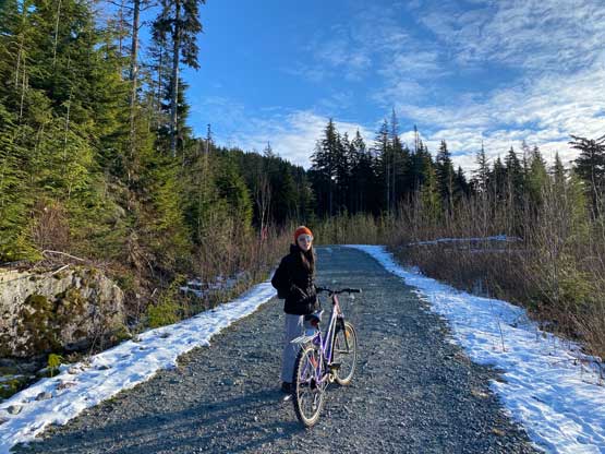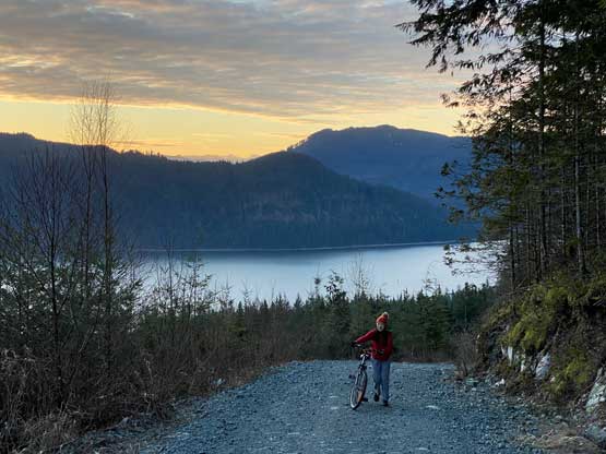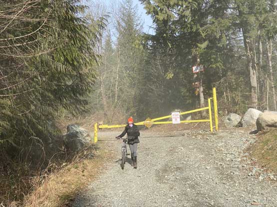 Wendy M. happened to have the morning of Wednesday available for a hike and I naturally suggested “Rolley Peak” even though the elevation (600 m gain) and distance (12 km round trip) wasn’t quite that easy for a morning before-work exercise. This peak had absolutely gone viral in the last few months but I had not seen a biking report yet, which was surprising as biking was definitely the best way to do this peak. The uphill grade was actually not that crazy for those with a proper mountain bike and some riding experience and the downhill would be an absolute blast. Wendy only owns a city bike but I suggested her to take it nonetheless because no matter how crappy the bike is, the trip would still be more enjoyable than walking the full length. The two of us left White Rock at 5:30 am and made to the gate on Florence Lake FSR right at the time when head-lamps weren’t required. The gate was right at the start of the spur road so we parked the truck on a pull-out that could fit 3 vehicles and started the ride.