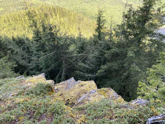 The upper SW Ridge had an easy section but soon narrowed down into another mess of pick-up sticks field. The difference was that the bushwhacking here was at worst “grade 3” and the sticks were much smaller and easier to step across. The bluff immediately to the west of the true summit offered surprisingly expansive views and the bluff right on the summit had some views looking south. At this point I decided against bagging Mt. Hicks because I needed a break from the bushwhacking so lingered on the summit for over half an hour soaking in the sunshine.