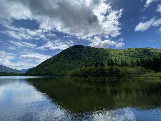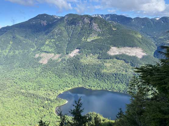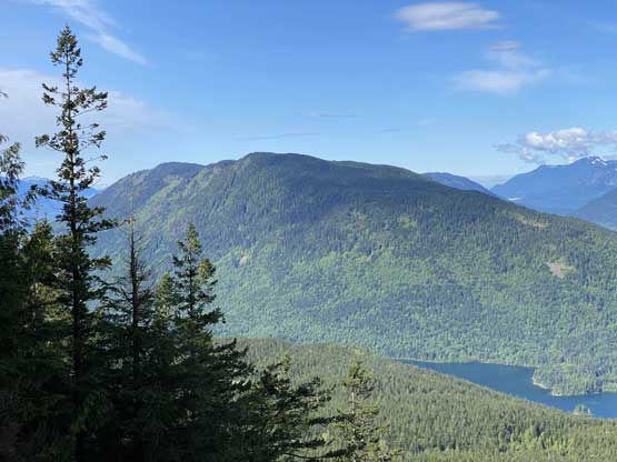 I noticed some dark clouds building up (thunderstorms in the forecast) so quickly packed up the gears and started the descent. I retraced my route down the upper ridge then veered down-climber’s right in hope to avoid the worst of the bushwhack. Indeed, I picked a much better line on the descent so that the bushwhacking never got worse than “BW3”. There were some devil’s clubs on the lower parts but those were easily avoidable. I almost decided to just fuck it and go for Mt. Hicks since I was already there, but then I checked the time and decided to head down. I had work in the afternoon and I didn’t want to risk being late. It was already past noon at this point and I knew the traffic could not be too easy in the rush hour. I drove to the shore of Deer Lake after the hike but it wasn’t very worthy.