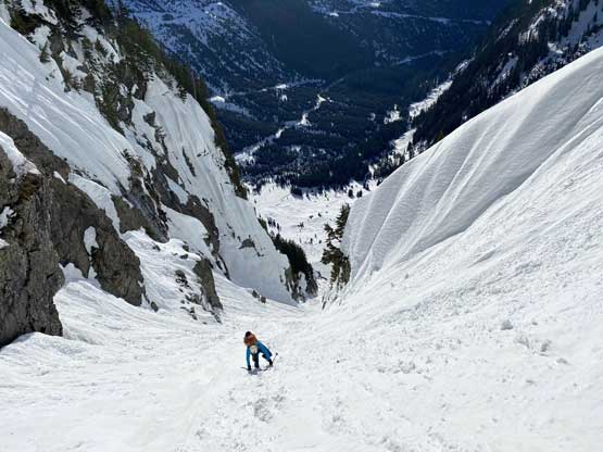 Our round trip time was under 8 hours 20 minutes and that’s considering one major route-finding mistake in the morning. This trip had been much more fluent than I anticipated and with the access mistery resolved I hope more climbers come up this way to enjoy some quality mountaineering. In terms of the length and the terrain I think this couloir is on par with Aussie Couloir on Joffre Peak, but mellower on average and without a steep exit on the top.