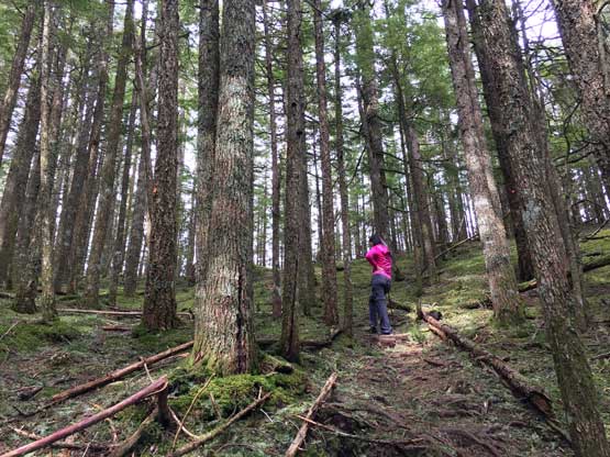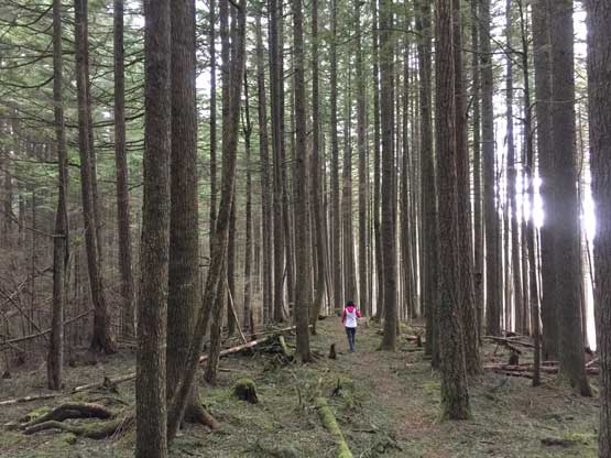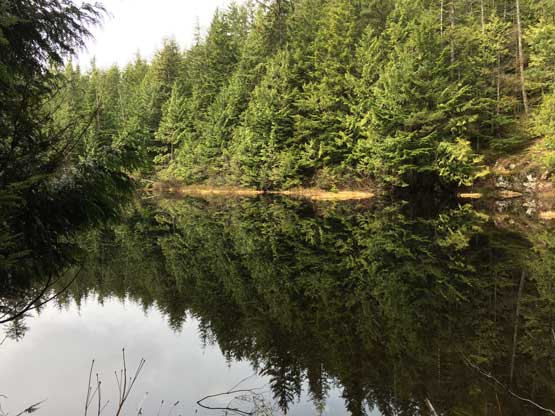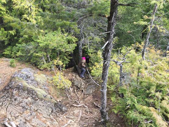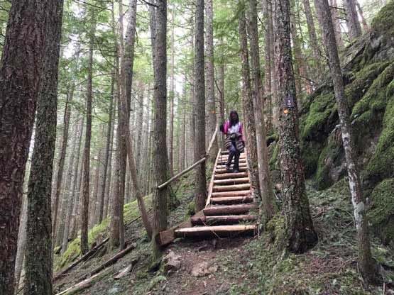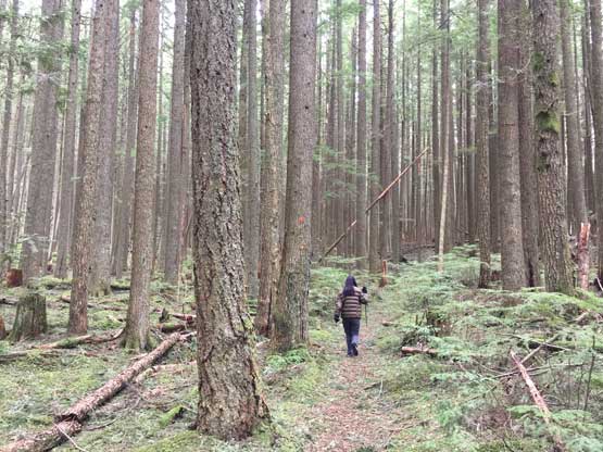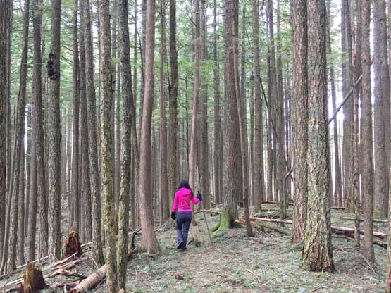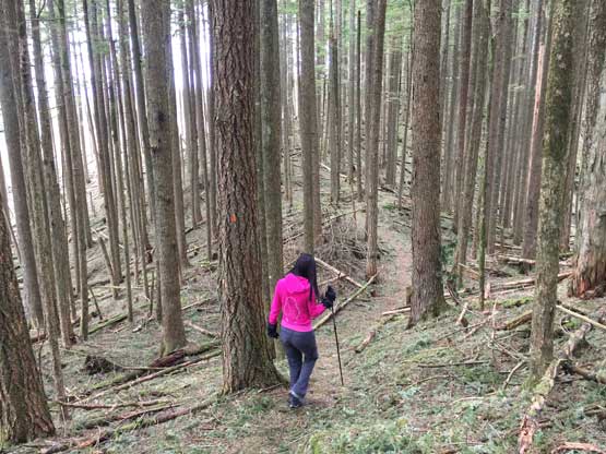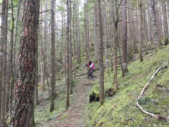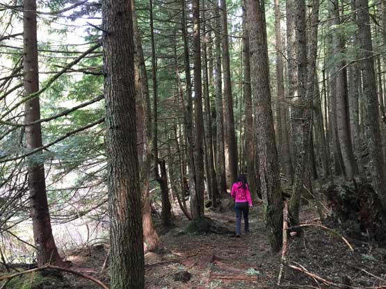 I had no issue driving my Tacoma all the way to the upper trail-head and that shaved 2 km of walking right off the bat. From the trail-head we followed an abandoned road for a short stretch before venturing into the woods. The trail was clearly marked and easy to follow. After a few switchbacks we got onto the broad “Vedder Ridge”. The elevation gain here was very gradual but we had to overcome a lot of up-and-downs in micro-terrain.