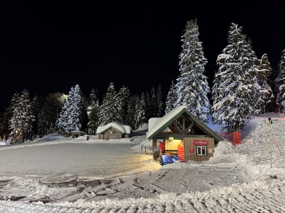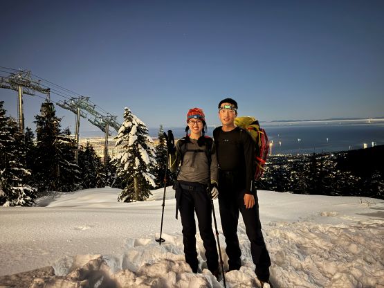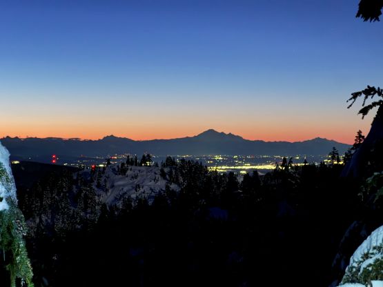 I had a few ideas in mind for the midweek but I needed to get back to work no later than 3:30 pm. I asked Clair if she’d be keen on a vampire styled ascent of “Beauty Peak” by starting at 3 am and she said yes. I later realized that Clair had a class to attend in UBC at 12:30 pm and that was considerably more challenging to manage than being in White Rock at 3:30 pm. To pull this objective off as a before-work trip (or more precisely, a “before-class trip”) would be an ambitious plan even for myself given the shear amount of elevation gain (over 1700m), the route-finding and the heinous trail-breaking past Little Goat Mtn. but I figured it would be a fun way to get to know each other. Clair’s definitely new to this mountaineering game but she did a few interesting winter ascents recently including “Puma Peak” in Callaghan Valley. This one would be harder than anything she’s done, but let’s see. I picked her up in UBC at 2 am and in 40 minutes we made to the start of Grouse Grind. To my surprise they gated the parking lot at night and the opening would be at 5 am which was too late. I simply parked outside the gate in one of the two available spots and subsequently didn’t pay for the parking. I did not get a ticket upon returning so maybe this was indeed the right way of doing it. We then spent 40 minutes preparing for the ramen breakfast and eventually started at 3:20 am.