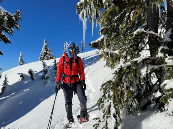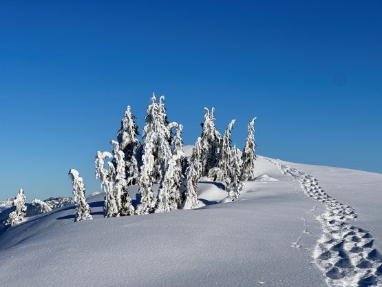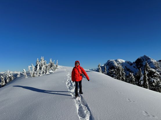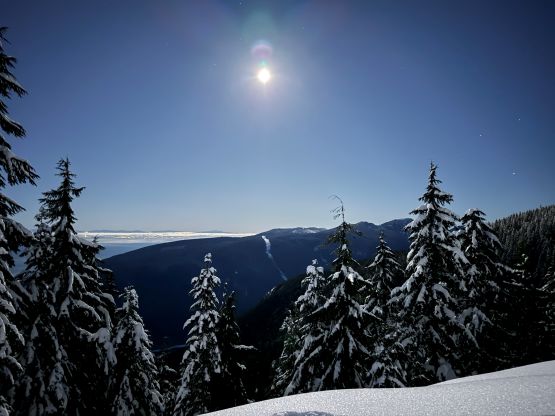 The plunge from the summit back down to Crown/Beauty col was fast and furious but the re-ascent of that second crux step was not trivial. I made us to do the climb on snowshoes while hauling on the vege and it turned out to be harder than expected. I literally pulled Clair up using my 135cm trekking poles. We then gingerly retraced our steps down the south face of Crown Mountain. We made good time down the face but then had to deal with that annoying 250 m elevation regain out of Crown Pass. I then led us ascending to the top of Little Goat Mountain so Clair could claim the 3rd summit of the day, and we finally bypassed Dam Mountain afterwards. Ironically the worst of the route-finding was negotiating the maze of trails at the ski resort. We ended up going too far skier’s right and ended up in some kids circus. Looking at the GPS track I’m sure we took some contrived way back, but I honestly don’t know what’s the best way unless trespassing onto the ski runs. I’m definitely much better at route-finding in the backcountry. By the time we got back to the station (round trip just over 9 hours) Clair’s class had already started so there’s no point in rushing anymore. Clair’s next class was 3 pm so we had plenty of time to chill. The download ticket was now 25 dollars, more than double of what I paid back in 2016. In retrospect we should have hurried up as the traffic situation in Vancouver was quite bad. After dropping Clair off in UBC I had to rush to White Rock, and only earned 5 minutes of spare before showing up at work. I then worked all the way to 8 pm to conclude another exhausting but satisfying day.