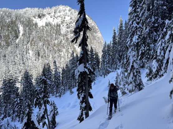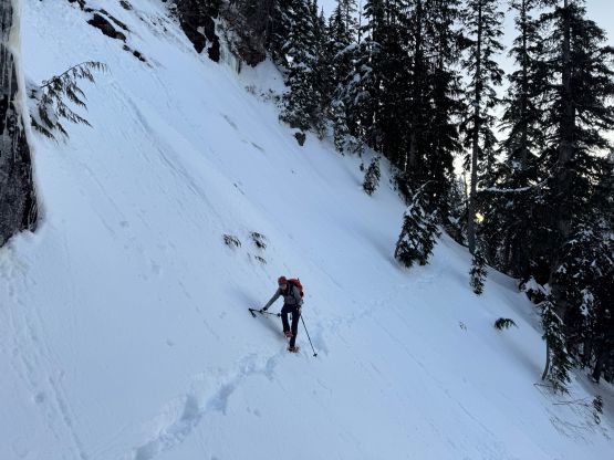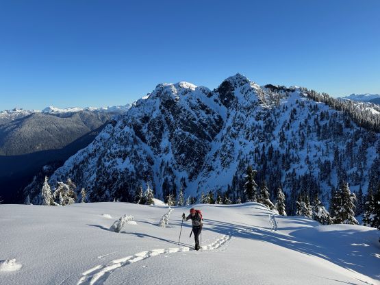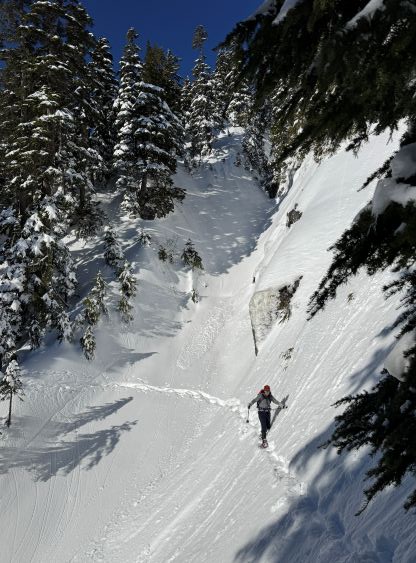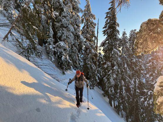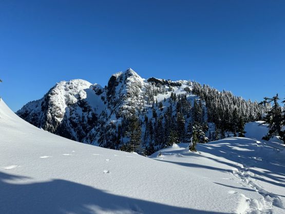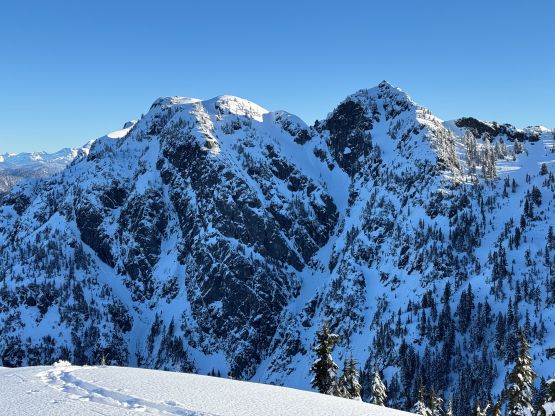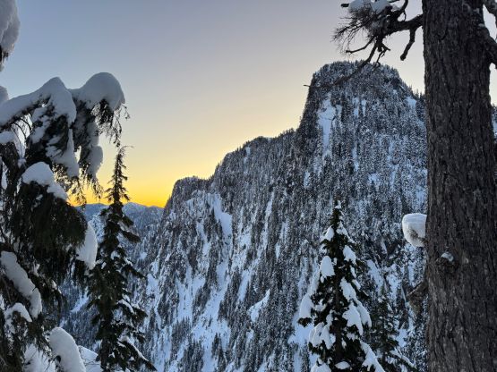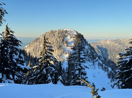 “Beauty Peak” is the unofficial name of the P100m bump on the west shoulder of Crown Mountain and despite being a sub-summit, this peak, particularly the SW Gully is very visible from the city of Vancouver. For years I had considered tackling the serious trespass (of the watershed’s gate) to climb the forbidden classic, the SW Gully but all the sudden another team did that during the pandemic. The amount of attention that group caught, albeit with a rescue, changed my mind. Even the standard route is technically inside the watershed, but at least it’s well written in the Baggers Challenge with hundreds of documented trip reports online. My plan was to climb the standard route in winter during a L/L/L “green brick” window, as my focuses in the summer months are never in the local mountains. After a week of unstable conditions after the January’s drought layer got buried the snowpack finally stabilized again, and the best conditions seemed to be in the North Shore or places that are closer to the coast.