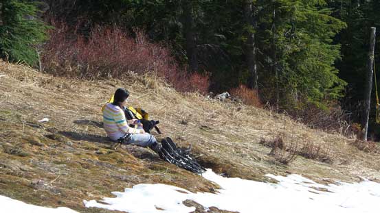 Immediately beyond the “chairlift summit” there’s a dip followed by more forested terrain. It appeared there’s still fair amount of work involved so given our time constraint Cathy decided to wait for me tagging the true summit. It took me less than half an hour to rush there (hitting both the south and north peaks), and back. I also “discovered” a marked trail which might actually be the Baden Powell trail.