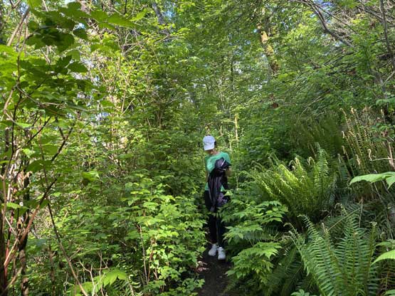 I was not expecting to see sun on this particular Sunday so once the weather cleared up from the west I made a spontaneous decision to drive Kat up north for this short hike. It seems like Kat has been my go-to partner for these dumpster-diving objectives in Vancouver and surrounding areas. We parked at a random pull-out on the north side of the hill. The hike looked so tame that I decided to just hike up on my sandals. It turned out there was a maze of trails once leaving the main branch, and I had to check GPS several times to make sure we don’t end up in someone’s home by accident. The summit was as expected, pretty tame. I took an obligatory “victory shot” and thought I stepped on some dog shit… We explored a bit on the roads to make sure we got the highest point and that’s it.
