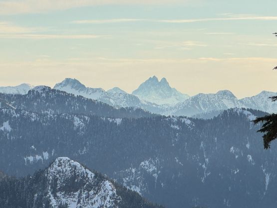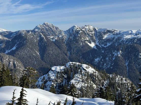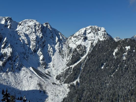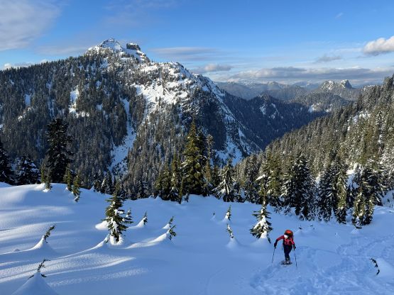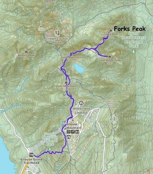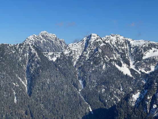 “Forks Peak” was once an extremely obscured objective buried in Hanes Valley hidden behind the rugged Goat Ridge. This peak does boast over 100 m prominence so it’s “legit”, and offers a nice couloir route on the north face according to one of the earlier trip reports on bivouac.com. That party however, spent 3 days to make the winter ascent even with taking the gondola up. I did not understand how it’s possible to climb with such a slow pace especially with a healthy snowpack to fully cover up the bushes. The earliest summer trip report was from Simon and the guidebook author David Crerar’s ascent and they reported some horrendous bushwhacking. In the past few years the status of “Forks Peak” had changed thank to the inclusion in the Bagger’s Challenge, that nowadays there’s a climber’s path along with more-than-needed amount of flagging on the standard route from Goat Ridge. This is still a serious undertake due to the shear amount of elevation gain, loss and regain. My plan was to do as many of these North Shore’s objectives in winter as possible as I believe most, if not 95% of the peaks in the Coast Range are better done with a snowpack. The main problem in winter is the access, but that’s never an issue for the North Shore Mountains. I had debated about taking the standard route versus Wickenden Creek from Lynn Headwaters, but I thought it’d be more fun to take the standard route and there’s a bonus of tagging “Goat Ridge Peak” on the return to fully clean up the area.