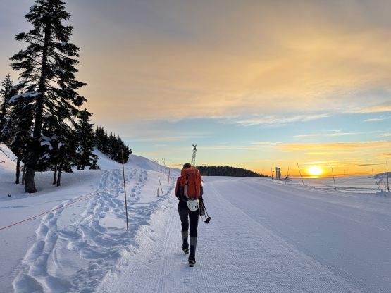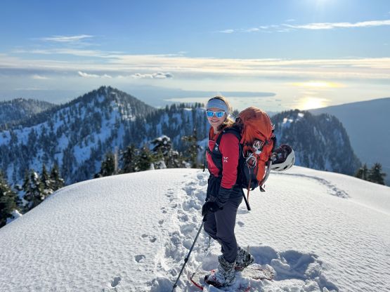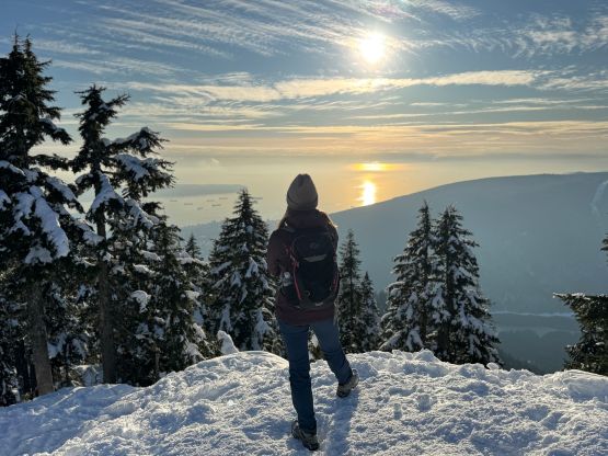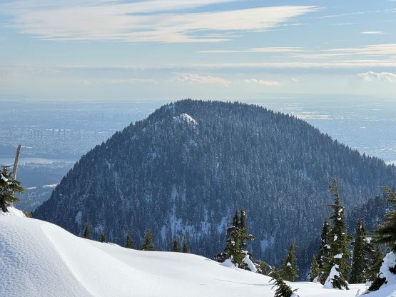 For the ascent of BCMC trail I made Holly to lead the pace as I’m never the greatest at setting a sustainable pace. This was just a repeat of what I did two days earlier but we got to the chalet 10 minutes faster, in 1 hour 25 minutes. We did start a little bit higher by parking at the lot D, and directly hopped over that closure sign instead of trying to find an alternative starting point. The chalet was open as expected, and we ended up spending more than half an hour chilling. They had even opened the cafe so I bought a cup of hot London Fog for 7 bucks, and loaded up the water bottles with hot water. I don’t think we should get too used to this kind of European style though. Holly is apparently the expert of Grouse Mountain as this entire idea was her suggestion. I had done almost every single peak in this range and this was the first time that I actually took advantage of the services. Holly also knew the right way to navigate the maze of trails and ski runs, that we managed to pick a line in between the two routes that I took two days ago, and did not need to don snowshoes. We opted to bypass both Dam and Little Goat Mountain as the objective was to get to “Forks Peak” as quickly as possible. We did not need to don snowshoes until after Dam/Little Goat saddle. The bypass of Little Goat was as bad as what I remembered from two days ago in the dark, but at least it’s no longer an unknown.