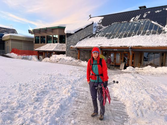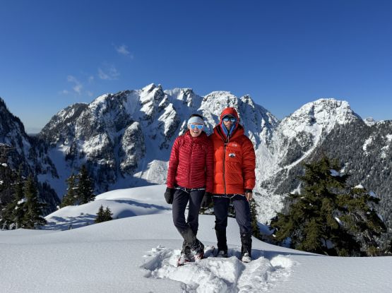 I of course, would not plan to spend 3 days for such a lowly objective and my idea was to simply day-hike it even by starting from the BCMC trail-head. Having a bullet proof snowpack would simplify things, but there are too many “bigger” objectives to consider when such a window happened. I eventually picked a day when the avalanche hazard was low but the snowpack was deep and unconsolidated, and still only needed 11 hours for the round trip. This trip also happened coincidently on the Valentine’s Day and thankfully Holly signed up for the challenge so I didn’t have to spend the Valentine’s Day alone in the cold. Another reason to finally go for “Forks Peak” was that I just did a trip to the nearby “Beauty Peak” two days prior, so I knew what exactly to expect at the moment. The weather also downgraded for Washington as otherwise my original plan was Jim Hill Mountain near Stevens Pass. Holly and I agreed to meet at Grouse Mountain’s parking lot D at 5:15 am to start hiking no later than 5:30 am. The plan was to take a break and load up our water bottles in the chalet and that wouldn’t open until around 7 am. For gears I decided to carry one 30 m rope, a bunch of cords, two ice axes/tools each, steel crampons and the smallest sized snowshoes. The trail-breaking wouldn’t be easy but there’s already a track all the way to the summit of Goat Mountain, and the majority of the terrain beyond that would be descending (400 m loss, and less than 200 m regain to the summit of Forks Peak).