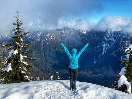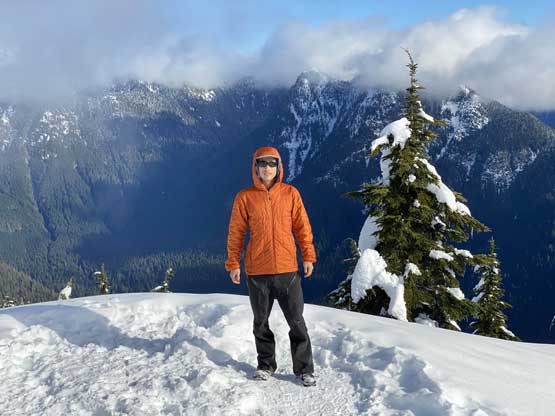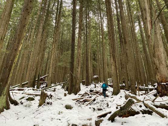 On the descent Angela decided to use microspikes while I opted to not use them. I preferred to just slip and slide on my boots as the trail’s grade was generally pretty mellow. The last few hundred meters of the descent was a little trickier as the trail was rocky and rooty with patches of snow and ice. Our round trip time was about 4.5 hours and we did manage to get back to White Rock in time for my afternoon/evening work.