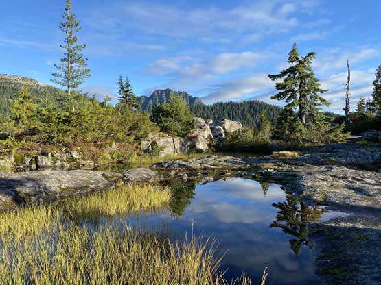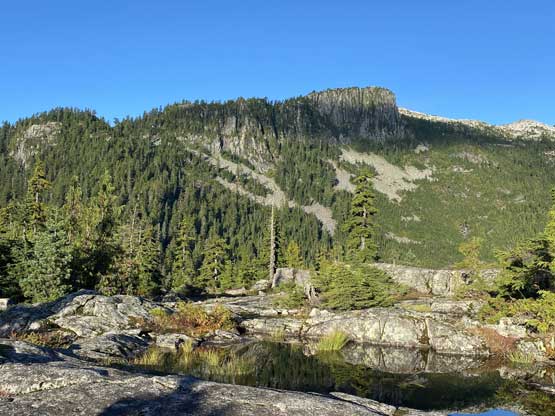 The original plan was to bag “Paton Peak” on the return because it’s overall just a bonus objective but we somehow managed to miss the trail junction. After hiking across a short but scenic corner slab I checked the GPS and sure enough we missed the Coliseum’s turn and were already halfway up towards Paton’s summit, so we might as well bag this one first. The summit was more open than expected such that we eventually went farther to explore the northern edges. We had a long day ahead but otherwise we could have easily spent an hour here playing those “Instagram photography”. On the descent I took a massive spill on some wet slabs almost injuring my hand and that gave me a good heads-up for the rest of this day. The trail continued descending a short ways passed the junction into Coliseum/Paton saddle and the next objective would be Coliseum Mountain.