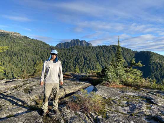 Francis on the summit of “Paton Peak” with Mt. Bishop behind