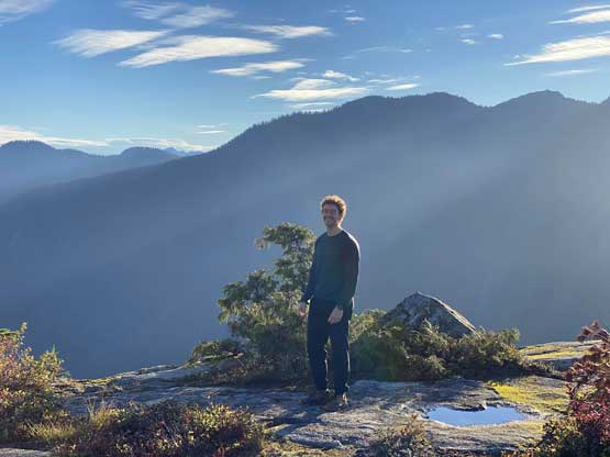 Francis on the summit of “Paton Peak” with Mt. Bishop behind