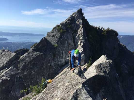 For the sake of reason this is a technical, and yet very eye-catching objective from Metro Vancouver it’s not hard to find partners. This had caught a lot of interest among Jeff Han’s friends circle as well as a few other friends of mine. When it eventually came to this trip, a total of 5 of us had gone up and over Crown Mountain and now the focus was turned onto The Camel, but the first business was getting off Crown Mountain to Crown/Camel col.