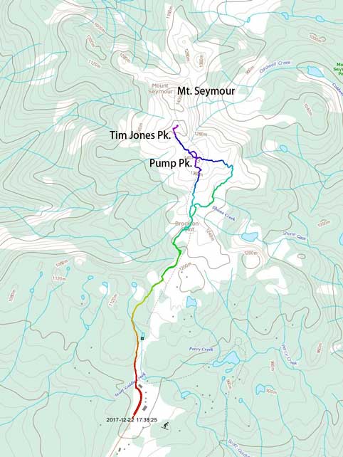 Over the past decade a group of local hikers and mountaineers had been working on assigning the “second peak of Mt. Seymour”, or the “2nd Pump” an official name in honour of Tim Jones, a long time member of North Shore Rescue. The status was finally approved by the government in 2016 so now all three summits of Mt. Seymour have separate (official) names. To me this means they are three different peaks despite the lack of prominence of the former two. I’ve hiked to the top of 1st summit (Pump Peak) in the summer of 2009 as a high school student, and I’ve attained the 3rd (true) summit of Mt. Seymour in February of 2016 as a winter climb. Now with the second peak gaining its official status I just had to come back, and “claim” it as well – as typical a peak-bagger’s mindset as it is.
