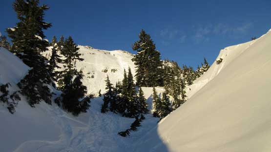 After the parking lot gong show I joined the hordes marching up the packed Seymour main trail. The snowshoes stayed strapped on my backpack as they were absolutely not required on this day.. By the time I reached Brockton Point I didn’t feel like having done enough warm-up yet. The south face of Pump Peak was heavily tracked out by skiers with a fat boot-packing trail in the middle. I had never done this “winter direct” variation and I have to say this line looked uber sexy comparing to the boring trail option so why not. The hike to the base of Pump Peak’s south slopes required a bit of post-holing on undulating terrain but still, the snowshoes weren’t required.