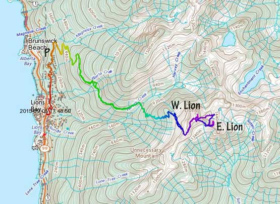 West Lion and East Lion standard route from Lions Bay. GPX DL
