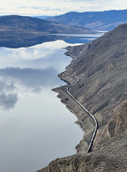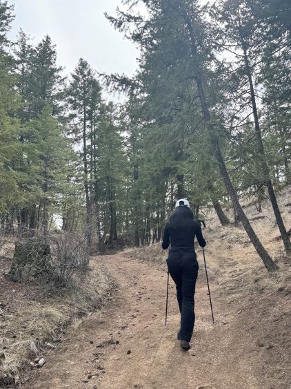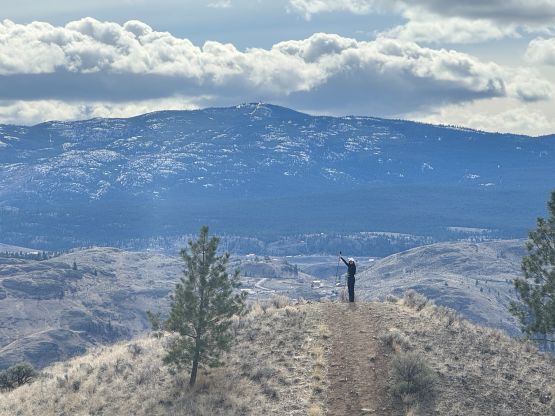 Battle Bluff is one of the lowly pimples in the vicinity of Kamloops and despite being officially named, this one does not boast over 100 m prominence. I noticed it years ago from simply browsing the maps. Theoretically I should not have much interest in it but this hike offers some notable reward-to-effort ratio and is starting to become a hot spot on the social media. I twisted my ankle roughly two weeks earlier and I couldn’t do much beyond the basic walking. On top of that the weather was shitty in the vicinity of the coast. Clair also expressed some interest in road-tripping so upon seeing pockets of sunshine in Kamloops area I made the last minute decision for us.