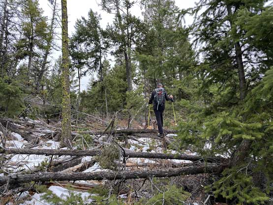 Blue Mountain is a broad, forested and dull-looking plateau immediately to the west of Penticton that offers extremely minimal recreational interest whatsoever. The area locates in First Nation reserves so I’m sure hunting and mountain biking is prohibited. That leaves the only possible recreational use to be the so-called “stealth peak-bagging”. The highest point of this forested dome boasts over 600 m prominence and name is official so it does draw some attention from the peak-baggers, but still, this peak is rarely ascended and even more rarely reported.