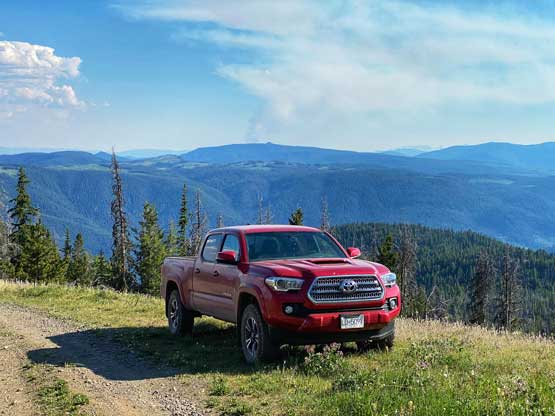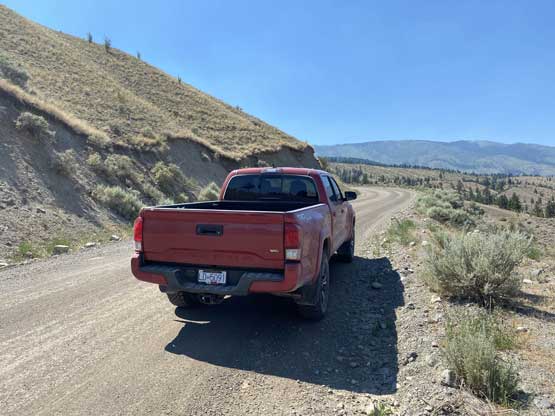 From Ashcroft I followed the direction given by Google up Hat Creek Road towards Oregon Jack Provincial Park passing a great variety of terrain. I started the drive from the dry, desert-like valley and ascended into decently dense forest. I stopped a few times for photos. I then turned onto the narrow and rough Cornwall Hills FSR that would eventually lead me to the summit. I pushed my Tacoma all the way to above treeline and parked after a few sketchy switchbacks on slanted ground and that left the remaining 2.5 km to be walked (which I did not mind). There’s one park ranger’s vehicle driving down while I was going up, and passing each other proved to be a little bit interesting to say the least. I was very happy that nobody else was up on the hills as this is not a road that you want to have too much traffic on.