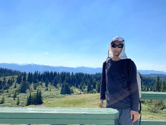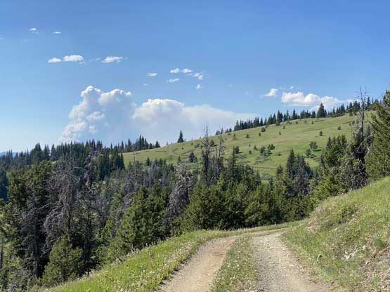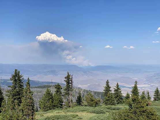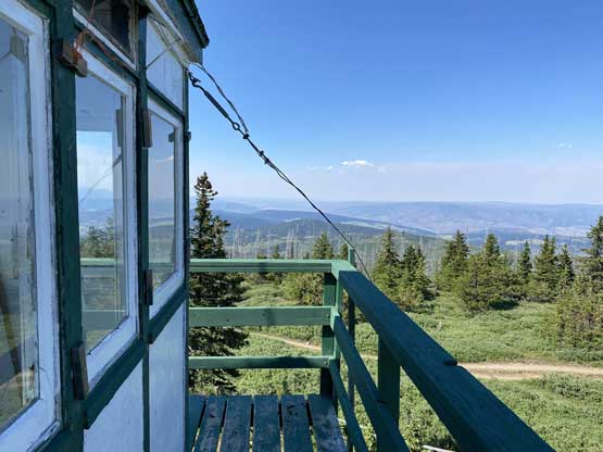 The temperature was about 38 degrees when I started the hike so I wetted my hat and my shirt and carried a shit ton of water even though this was a very short one. As expected I got some decent meadows views but the most exciting was to see a few large plumes of fire building to the north. I also went into the fire lookout itself. The register was cool to read but the bugs were horrendous inside the lookout or wherever there’s shades.