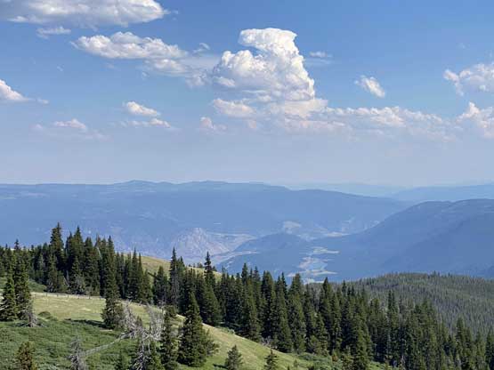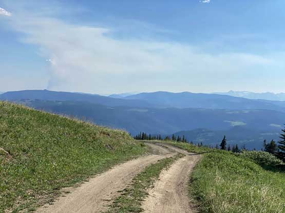 Cornwall Hills is a rather tall summit and the highest point of a broad section of Clear Range immediately to the SW of Cache Creek and to the SE of Marble Canyon. There’s a service road that goes all the way to the very top where a fire lookout is located, but to drive this one a high clearance, 4×4 vehicle is an absolute must. The upper hills offer cool alpine meadows scenery and a (hopeful) escape from the heat as it rises more than one vertical mile above the semi-arid Thompson River valley.