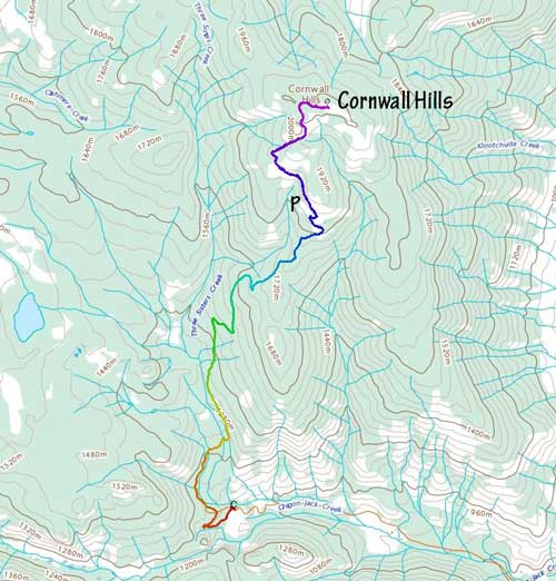 I did this peak as the last objective of my solo Kamloops-based peak-bagging trip. This was during the apocalyptic heat dome that the valley temperatures had gone above 45 degrees and the alpine temperatures were also approaching 40 degrees. I planned my objectives such that I could drive most of the way up and hike (if I wanted to) the last 2 km or so to the summit. Cornwall Hills was the nicest objective in this trip so I did want to hike a little bit despite that I was planning to hit the summit at around 4 pm, the hottest time during a day.