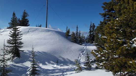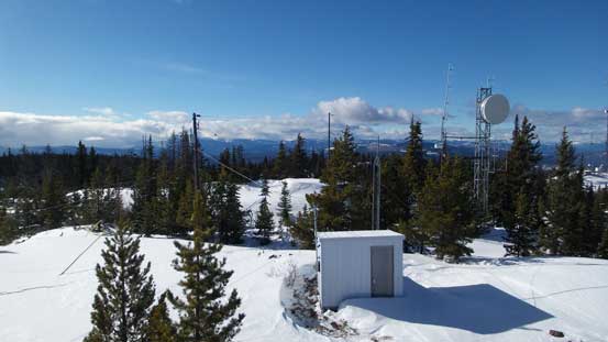 We strapped the snowshoes on after 1 or 2 kilometers up and the plod was long and boring and seemed to drag on forever. The view never opened up until the last 2 km where the road climbed onto a “plateau” feature bypassing the lower south peak on its climber’s right side. The true summit was on the far north end and still had more than 1 km to go. The summit had more than a few giant communication towers and despite that, it actually offered more views than what I was expecting. I wondered around a bit on the plateau to see what else was in sight.