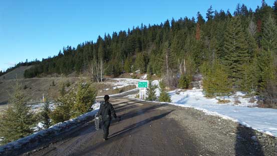 I figured there’s no way this could become a long day so we slept in and didn’t wake up until 8:30 am in the morning. I did a last-minute weather check and indeed, the webcams were showing nothing but sunshine in Merritt, so out eastwards for 240 km we exited the highway at Comstock Road. The weather was miserable from Hope all the way to Coquihalla Pass but as expected, it was sunny where we parked. The first 2.5 km along Comstoke Road was actually maintained in winter and was in a surprisingly good condition, but not liking to take a chance on logging roads with my low clearance 2WD (and without snow tires) we decided to walk the entire length.