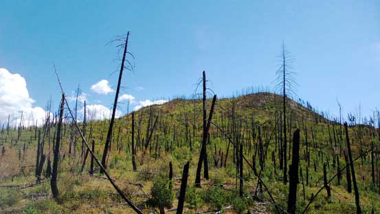 As you probably know already, I was in the process of moving to Vancouver and that needed more than 1 trip to complete. It’s mostly done now (Sept. 2) and I’m posting this trip report from Vancouver currently. The ascent of Mt. Armour happened as a side-trip from the first drive to Vancouver. As I drove by a small community called Barriere about 1 hour north of Kamloops I noticed this small “peak” just to looker’s left across the highway that appeared relatively prominent. A quick check of the Backroad Mapbook (Thompson Okanagan) I realized that indeed had a name. I was doing good on time so decided to bag it as I was there anyway.