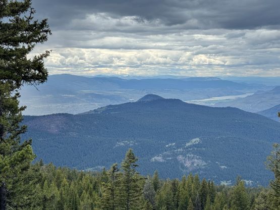 After taking in enough of the mediocre views we followed the same route back, jogging most of the time. The weather was about to turn as we got a few drops of rain back at the vehicle, but I still wanted another objective. I decided to make the final decision after getting back into Kamloops. Thankfully the rain stopped, so we resumed the peak-bagging quest. Kate’s knees were feeling the pain so I picked the easiest possible one.