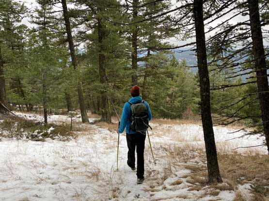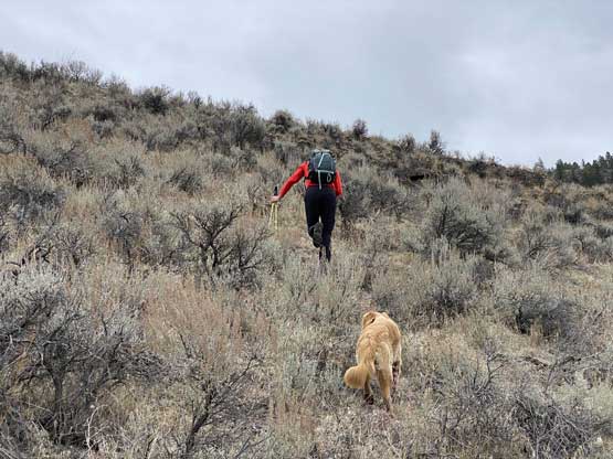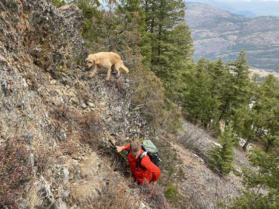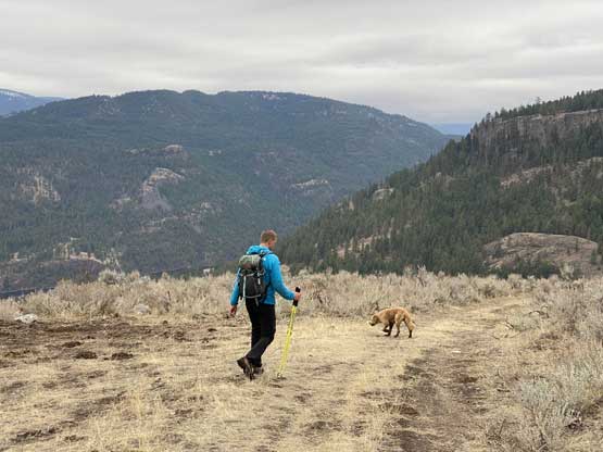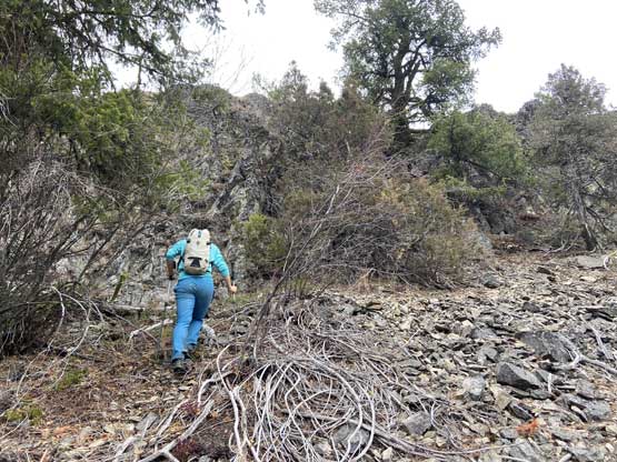 We drove up Sheep Creek Road for a short ways until the road became gravel. Matt was not keen to drive his brand new mini van on any gravel road so we parked lower than I was hoping for. From our starting spot we had about 650 m elevation to content with but at least the distance was short. We easily plodded up some open, desert-like slopes and then merged onto an old FSR heading upwards into Toy Creek valley. The road soon merged into the creek bed to the point that even ATVs would not be able to make any further progress.
