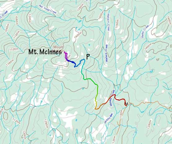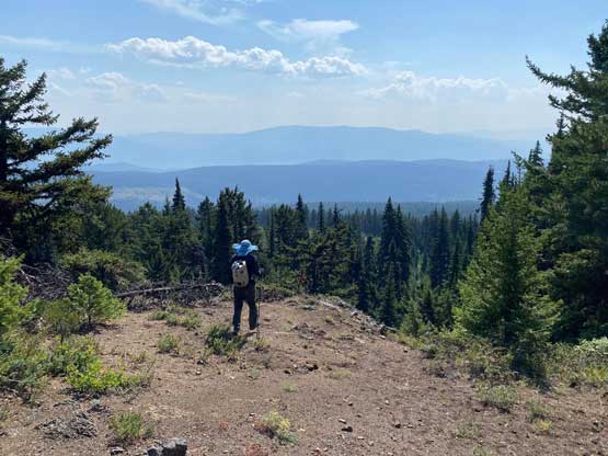 Mt. McInnes is the highest point of a large wooded area immediately to the SW of Merritt. The main reason this peak has caught some peak-baggers’ attention is the prominence but elsewise this peak definitely falls into that category of “dumpster diving”. The summit is completely forested with no view. Logging and ranch roads had been pushed to within 200 vertical meters from the summit. With a high clearance vehicle one can drive to the end of the road and from there the summit is a short ascent in mostly open forest and cut-blocks.