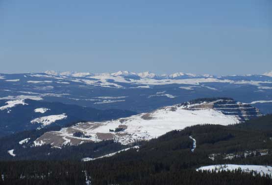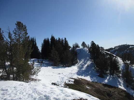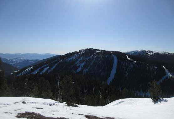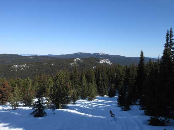 I essentially just plodded on the snowmobile tracks all the way up except for the last 50 meters where I joined mass hordes’ foot path “highway”. There are several important junctions and it seemed like most hikers had gone up from the Nordic center on the north/east side. The true summit had little to see and to soak in the (very limited) views one needs to walk around a couple viewpoints. I checked all possible viewpoints just to be sure I indeed got everything that I could see from this little hill. The most memorable part of Mt. Riordan’s ascent was two freakin’ large dogs barking and running at me once I returned to the true summit from a viewpoint. The dogs were uber aggressive and seemed totally out of control from their owner, but thankfully they didn’t bite.