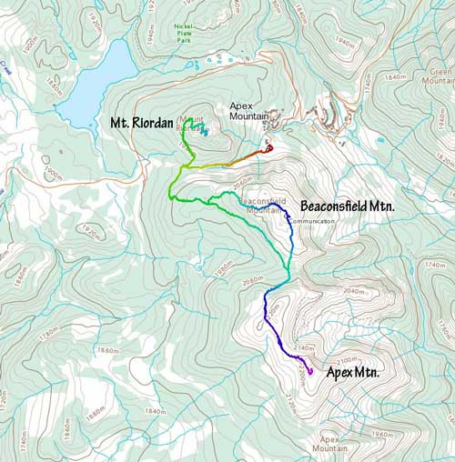 Ascent route for Beaconsfield, Apex and Riordan. GPX DL