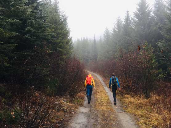 As we drove past Pemberton onto the Duffey Lake Road the weather did gradually improve but not to the extent suggested by the weather forecast. By the point we parked at the start of Seton Ridge Road it went back to pouring. We thought about waiting for a bit but decided that such would be pointless given the fact we also had to bushwhack on this hike. The condition of Seton Ridge Road surprised us given the lateness in the season. It was easily in “2WD” condition. We easily made up and over the pass and then descended over 100 m down to the saddle. Even the spur road appeared drivable so we opted to explore. We tried a couple roads and decided to park at about 2 km from the drivable end due to a few big waterbars. The weather was still mostly grey with some light drizzles.