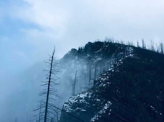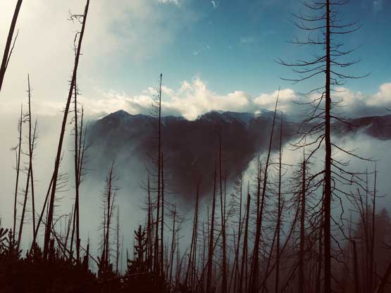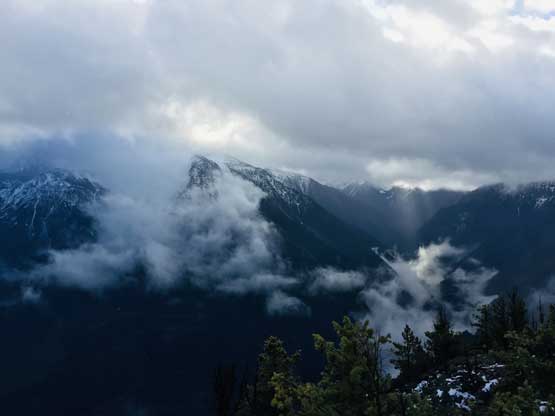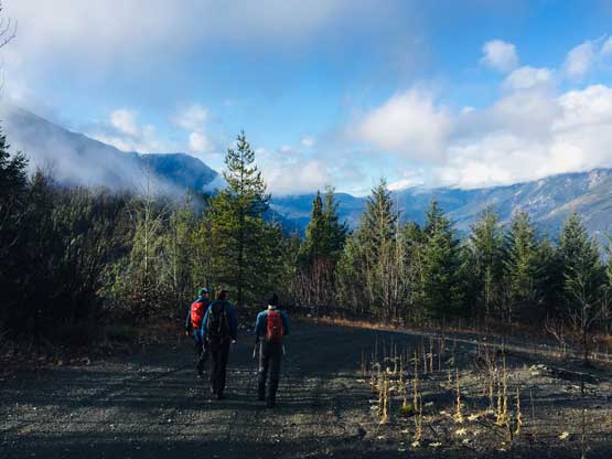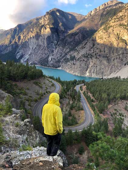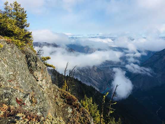 We were back into the white-outs during the descent so there’s little worth to document about. We pretty much just followed our own footprints back down the summit ridge, over endless dead-falls and then into the forest. I used GPS a few times to make sure we could pick up that game trail and were back to the logging roads almost exactly at where we entered the woods in the morning. The weather finally cleared up fully at this point and we could see Mt. McLean et al. on Mission Range. The day was still young and Ben suggested we could do a stop at a viewpoint near Seton Lake because that spot was famous on Instagram. The view from that spot wasn’t disappointing but the more important, we all got to practice our Insta skills to some extent…