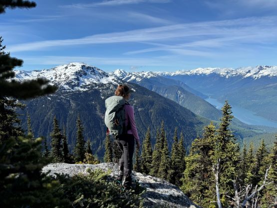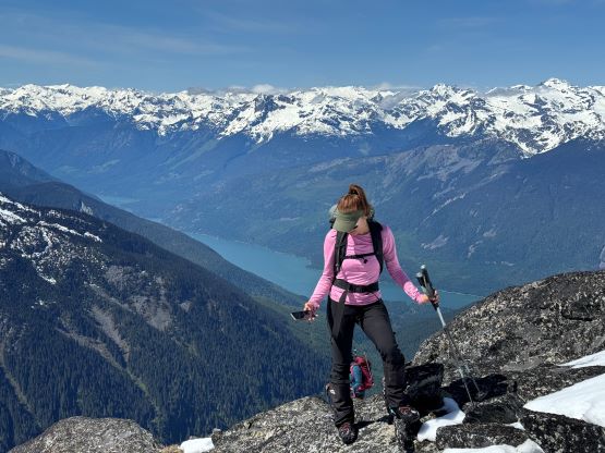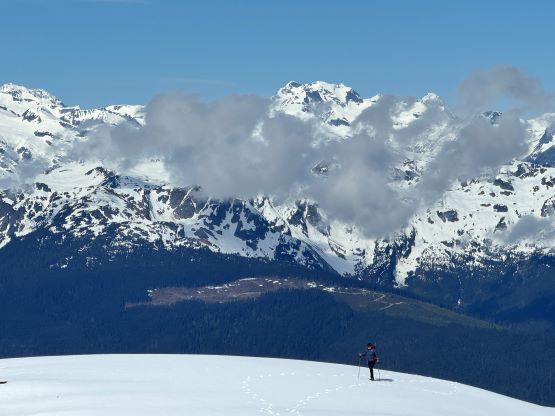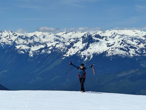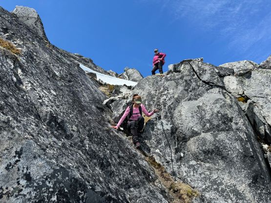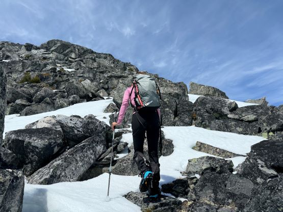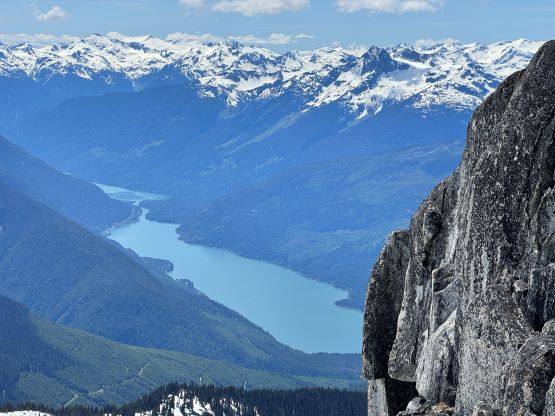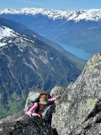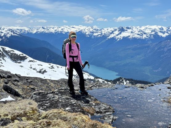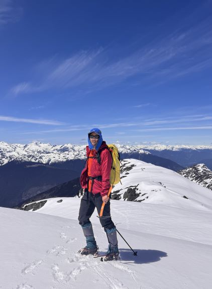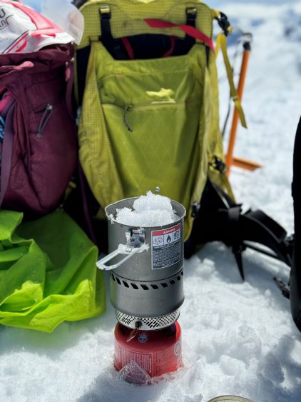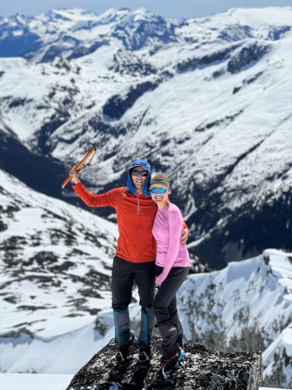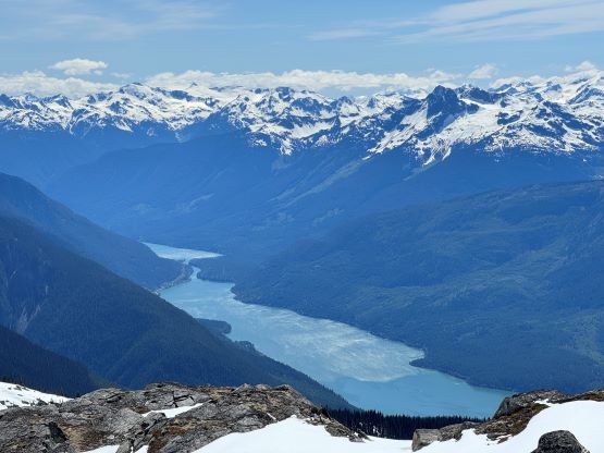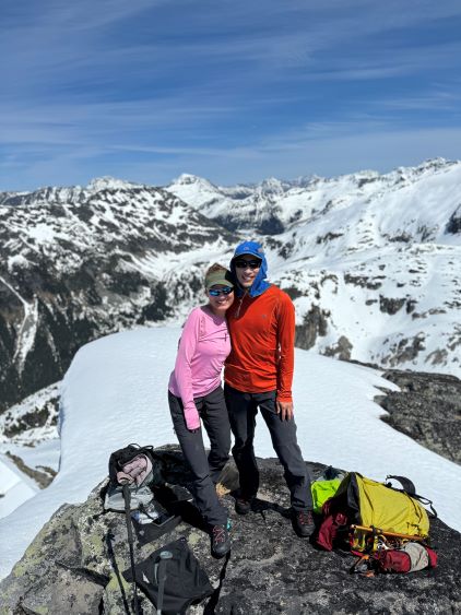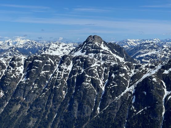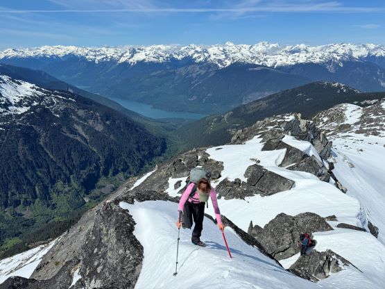The down-climb of that slab corner with not easy and required a few lieback moves, and the snow condition was much worse. While plunging down we constantly sank ass-deep but honestly that was to be expected at this time of a year in the drier interior zone of the Coast Mountains. There was one melted pool and Miranda had actually brought a filter, so we did our second batch of water loading without turning on the stove. I then led us rejoining the west ridge of “Asherah Peak” by an exploratory traverse and was successful in minimizing elevation regain. The post-holing was horrible but at least we were descending, and the bushwhacking, though terrible, was tolerable as again, we were descending. The pick-up sticks were actually kind of fun on the way down because we just had to scramble from one log down to the next and then repeat. There were probably 500 dead falls and this route is definitely not for the averaged. Our round trip time was 12.5 hours but over 4 hours were “stopped time”. Erica drove us back to Pemberton after I got us down the FSR section, and that allowed me to take a short nap. We had dinner in my go-to place (Mile One burger) and then I did the rest of the driving, back home at midnight.
