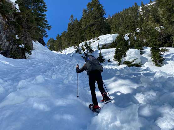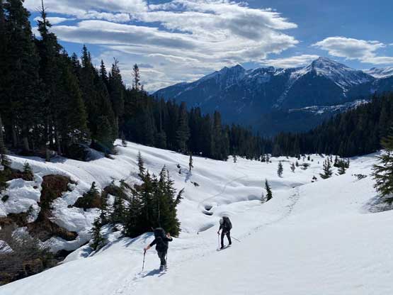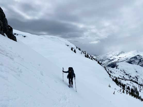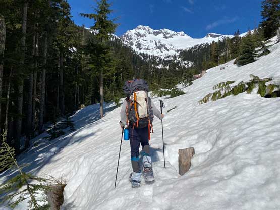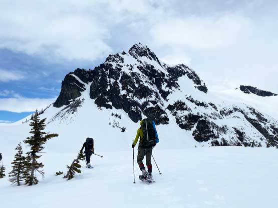 Snowshoes on and onwards. South Face of Mt. Glendinning ahead